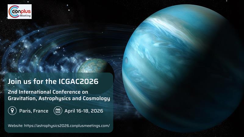 We are pleased to announce the 2nd International Conference on Gravitation, Astrophysics and Cosmology (ICGAC2026), which will be held from April 16–18, 2026, in Paris, France. ICGAC2026 aims to bring together leading researchers, scientists, and students from around the world to share the latest advancements and research findings in the fields of gravitation, astrophysics, and cosmology. The conference will feature keynote talks by renowned experts, sessions on cutting-edge topics such as Gravitation Physics and Lensing, Applied Relativity, Solar and Stellar Physics, Applied Physics, and Neutrino Cosmology, as well as opportunities for networking and collaboration. With a vibrant mix of academic and industry perspectives, this event offers a unique platform for insightful discussions, new partnerships, and the exchange of groundbreaking ideas. Join us in Paris to be part of an engaging scientific experience and contribute to shaping the future of astrophysical research.