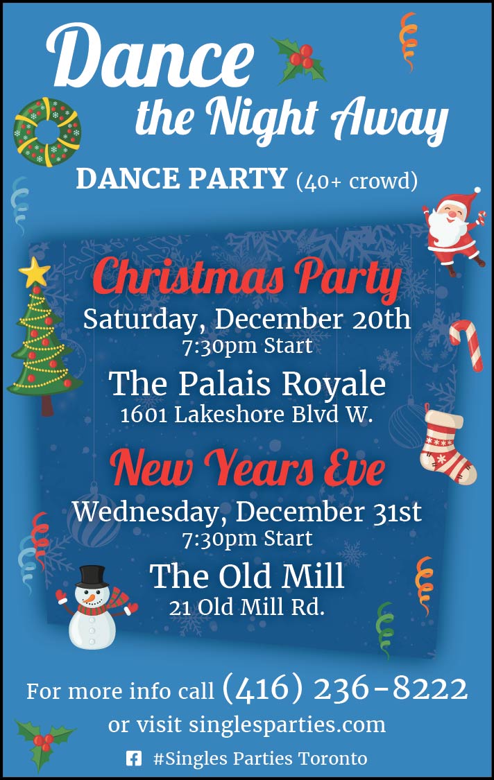 Come join us at the Palais Royale for the +40 year old Christmas Dance Party starting at 7:30pm