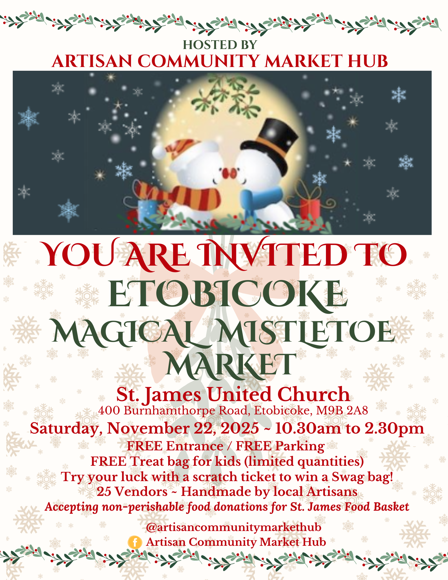 Join us from 10:30 AM to 2:30 PM — At St. James United Church – 400 Burnhamthorpe Road, Etobicoke, M9B 2A8.