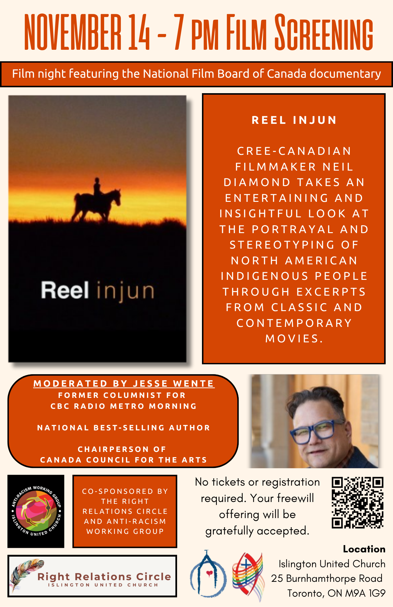 Join Islington United Church for Film Night on November 14! On Friday, November 14, at 7:00 p.m. at Islington United Church (25 Burnhamthorpe Road, Etobicoke), the Right Relations Circle and […]