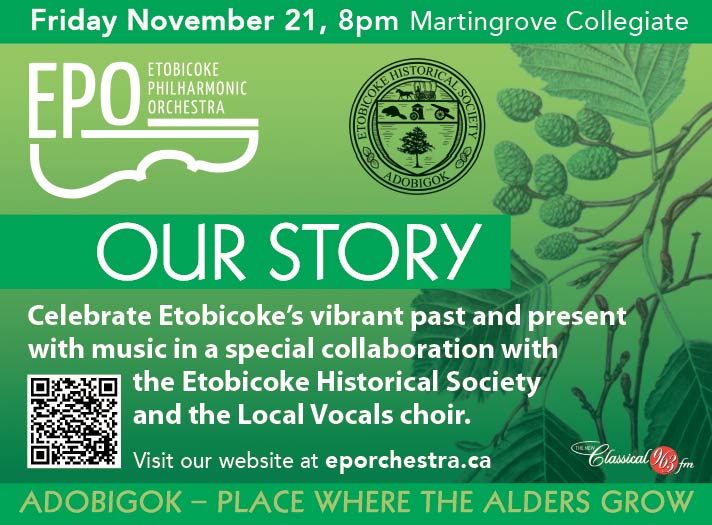 Celebrate Etobicoke's vibrant past and present with music in a special collaboration with the Etobicoke Historical Society and the Local Vocals choir. Visit our website at eporchestra.ca