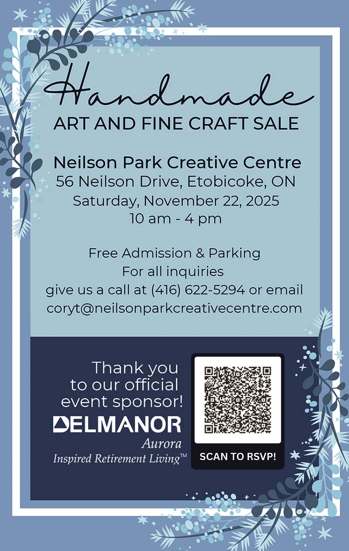 One of the biggest indoor sales of the year, Neilson Park Creative Centre's Handmade Fall 2025 Art and Fine Craft Sale is back for in time for the Holidays! Taking place on Saturday, November 22, get your holiday shopping done as you browse and shop from over 60 local artisans and vendors. Choose from handmade […]