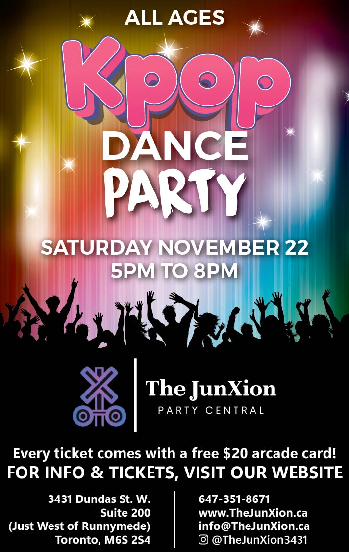 Join us Saturday November 22nd 5:00pm to 8:00pm for a K Pop all ages dance party. Visit our website www.thejunxion.ca for more information.
