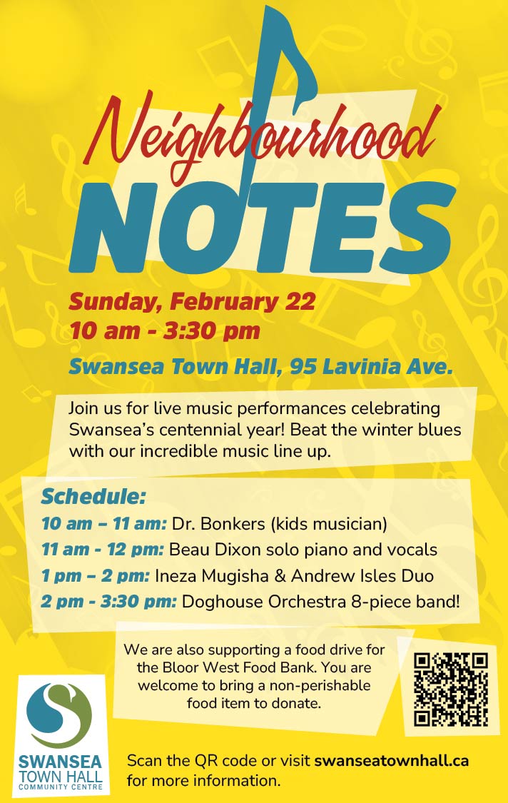 Join us for live music performances celebrating Swansea's centennial year! Beat the winter blues with our incredible music line up. Schedule: 10 am - 11 am: Dr. Bonkers (kids musician) 11 am - 12 pm: Beau Dixon solo piano and vocals 1 pm - 2 pm: Ineza Mugisha & Andrew Isles Duo 2 pm - […]