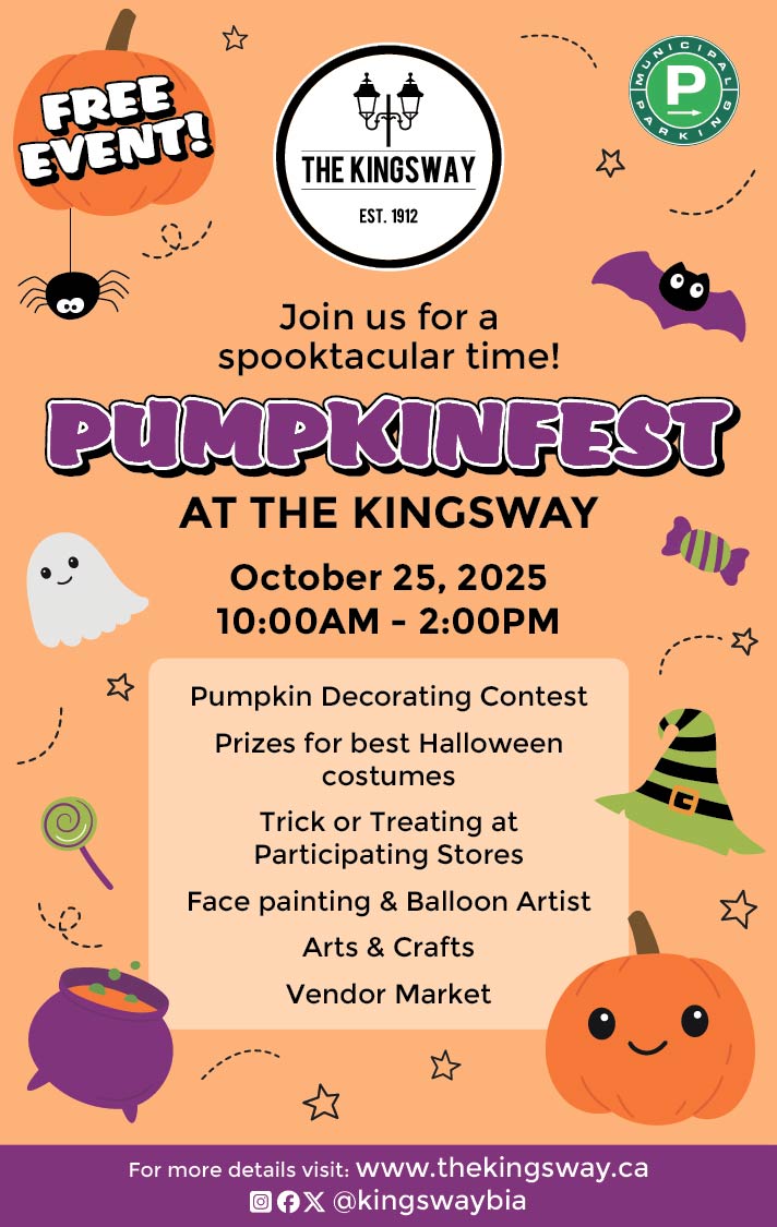 The KingswayJoin us for a spooktacular time. From 10am to 2pm Pumpkin Decorating Contest Prizes for best costumes Trick or Treat at participating stores Face painting Arts & Crafts Vendor market